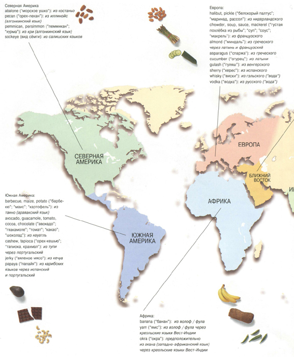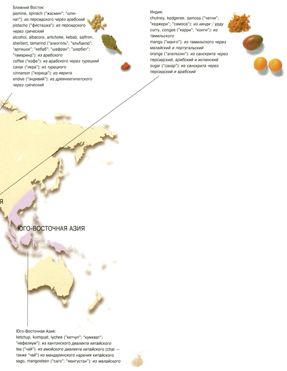 kebab (из арабского) mango (из тамильского языка, через португальский)