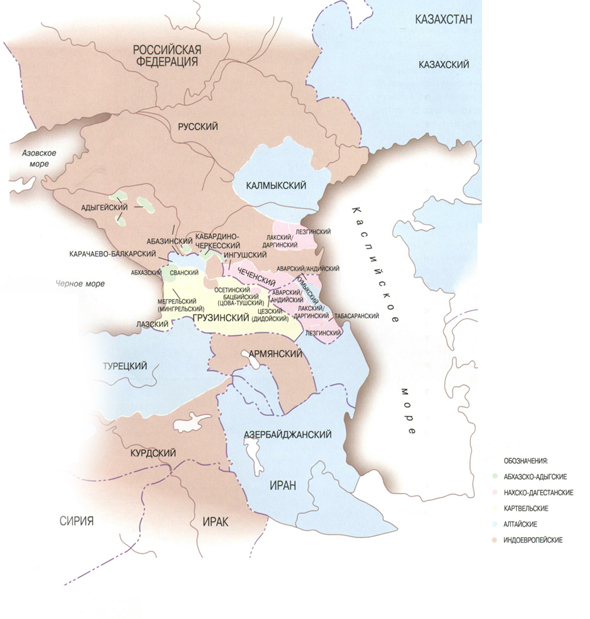 разнообразием отличается "гора" кавказских языков, тогда как семья алтайских