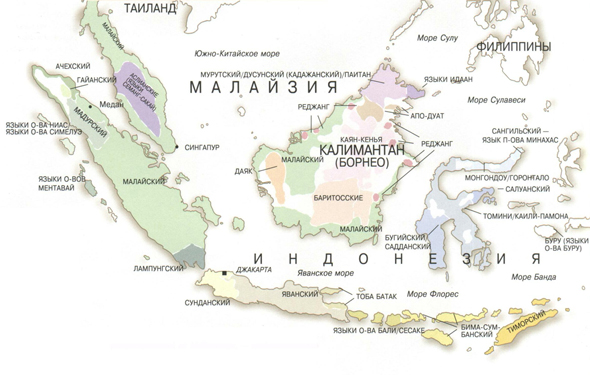 Все представленные на карте языки принадлежат австронезийской языковой