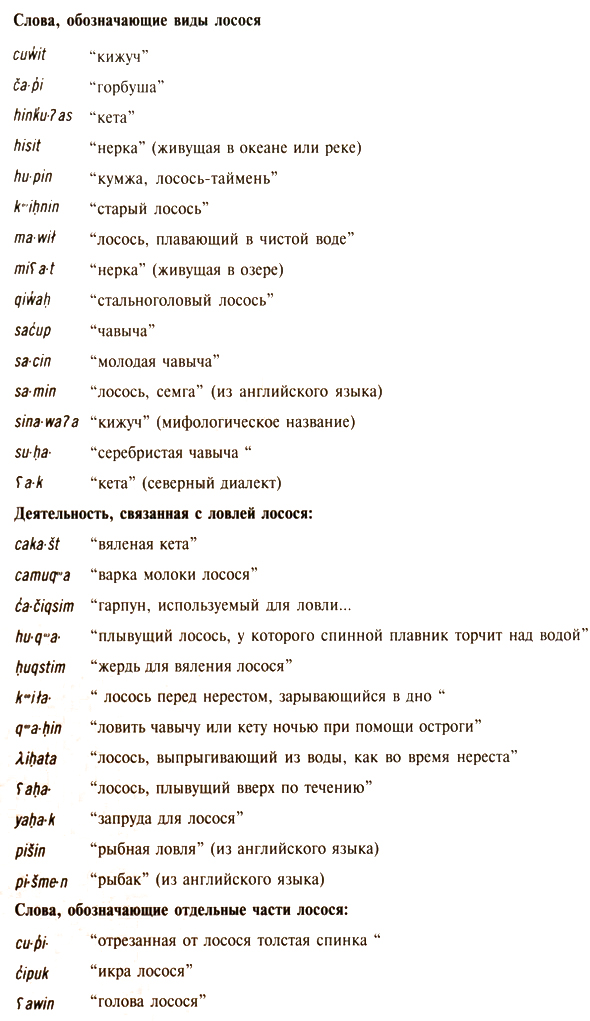 СЛОВА, ИСПОЛЬЗУЕМЫЕ В ЯЗЫКЕ НУУЧАХНАЛЬТ ДЛЯ ОБОЗНАЧЕНИЯ ЛОСОСЯ