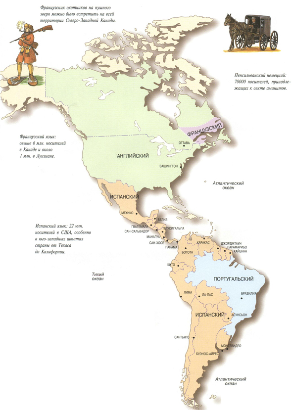 где господствует португальский язык. В Северной Америке в основном доминирует